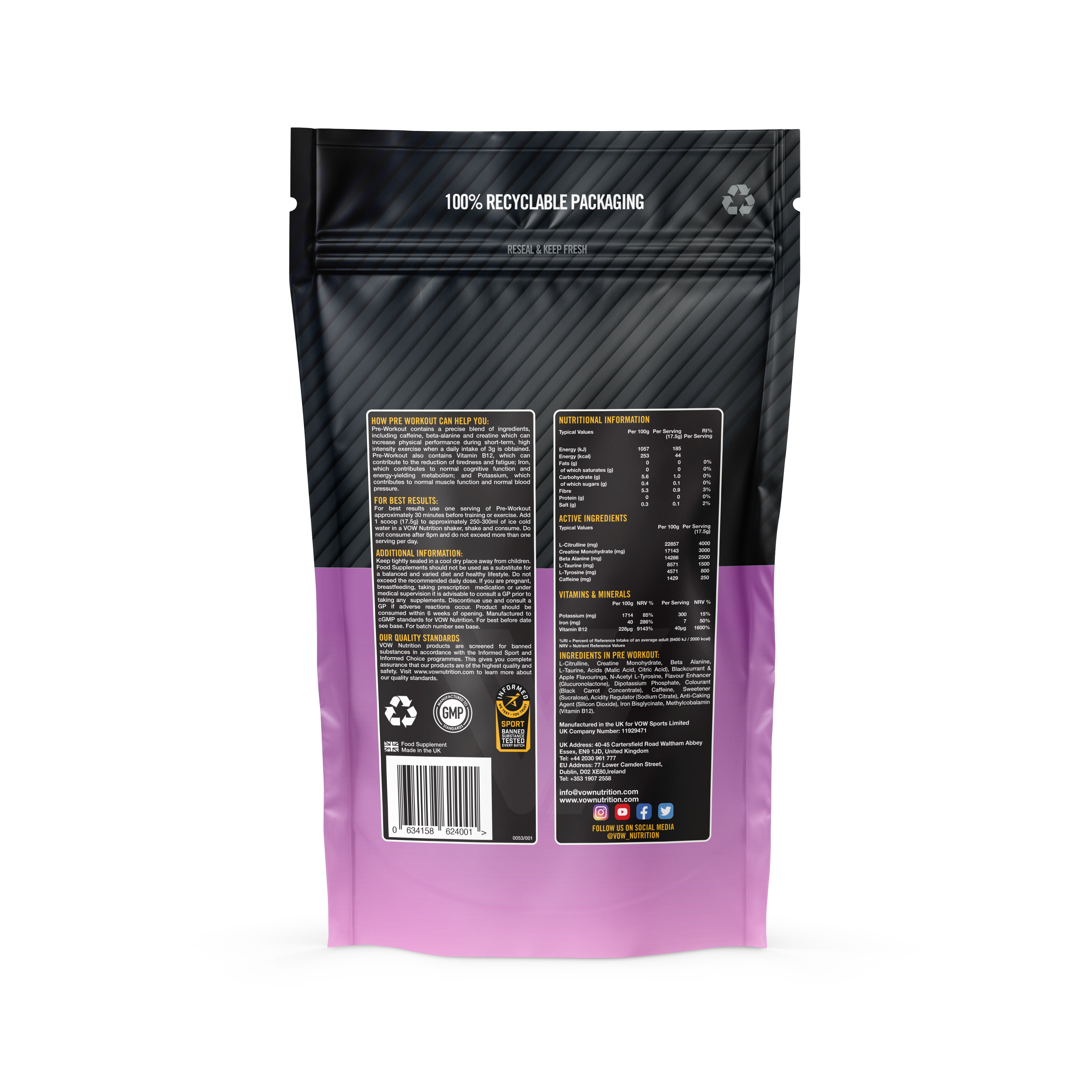 For the best results, we recommend consuming one serving of our Pre Workout 30 minutes before exercise by adding one 17.5g scoop to 250-300ml of ice-cold water. Due to the caffeine content, we recommend that users avoid consumption after 8pm and limit consumption to one serving per day. You can make mixing your Pre Workout and other supplements easy with our VOW shaker, available here.